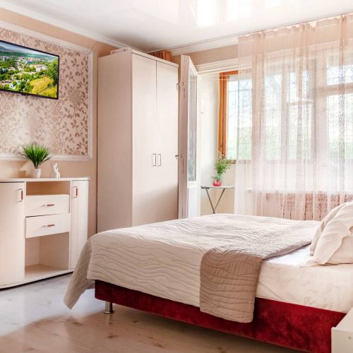 Сервисные апартаменты «Жилье на водах» находятся в 5 минутах ходьбы от центрального проспекта имени Кирова, около ж/д вокзала на первом этаже жилого многоквартирного дома, с лоджией. В апартаментах имеется отдельная комната с кроватью и диваном, который раскладывается и превращается в полноценное спальное место. Квартира оснащена всей необходимой мебелью. Интерьер выполнен в светлых тонах, новый натяжной потолок, современное напольное покрытие.
